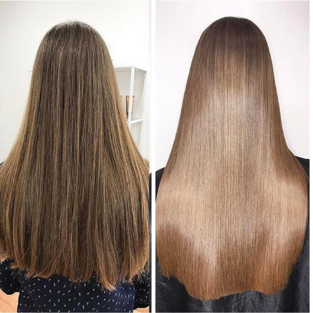 - Эффективность: в составах действительно содержатся полезные компоненты. Благодаря легкой текстуре, процедура обеспечивает быстрое восстановление и защиту волос от неблагоприятных природных и климатических факторов, а также УФ-излучения.