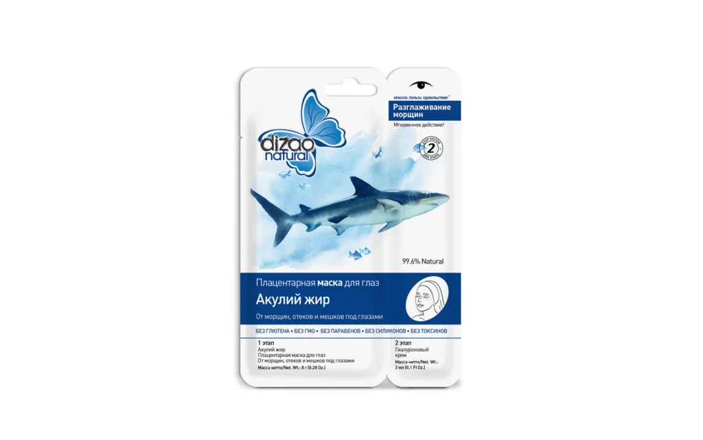 Маска с акульим жиром от Dizao: улучшает кровообращение, обладает лифтинг-эффектом и помогает разгладить морщины. В комплекте идет гиалуроновый крем, который наносят на кожу сразу после использования маски;